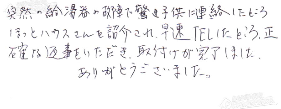 給湯器交換の評判