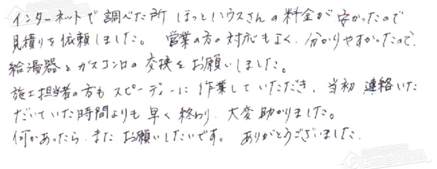 「ほっとハウス」の評判・お客様の声