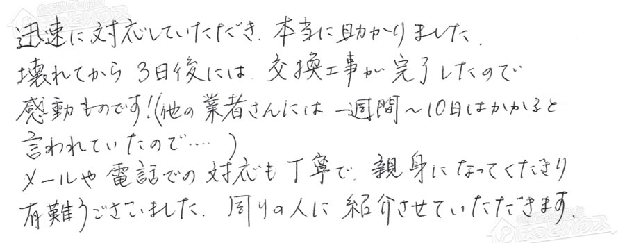 給湯器交換の評判