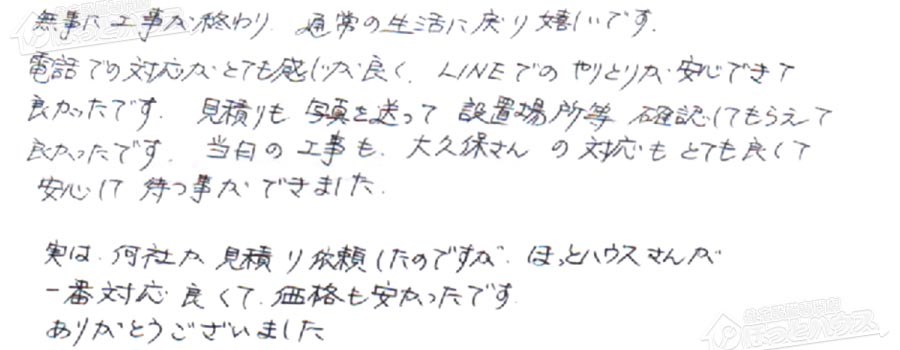 「ほっとハウス」の評判・お客様の声