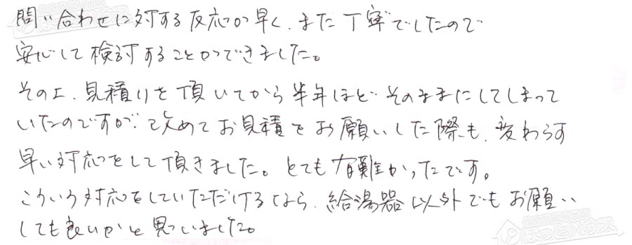 給湯器交換の見積りした中で…