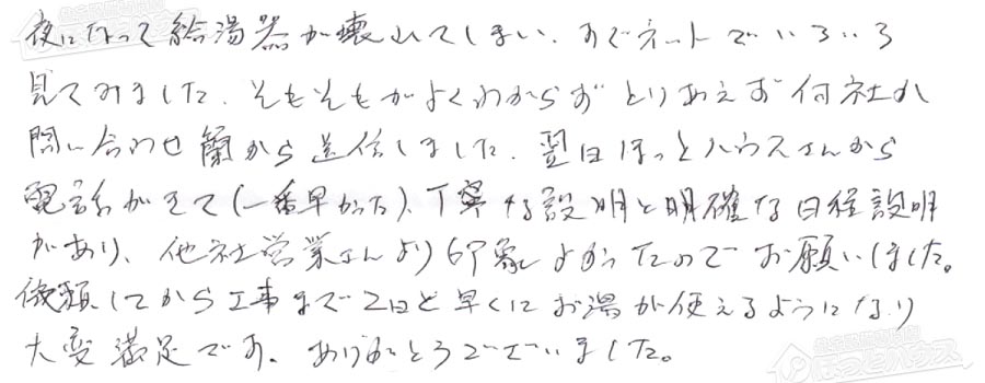 給湯器交換の評判