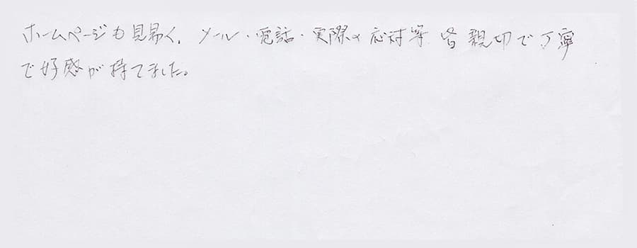 ホームページも見易く、メール・電話実際の対応等皆親切で丁寧