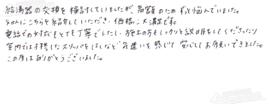 給湯器交換の評判