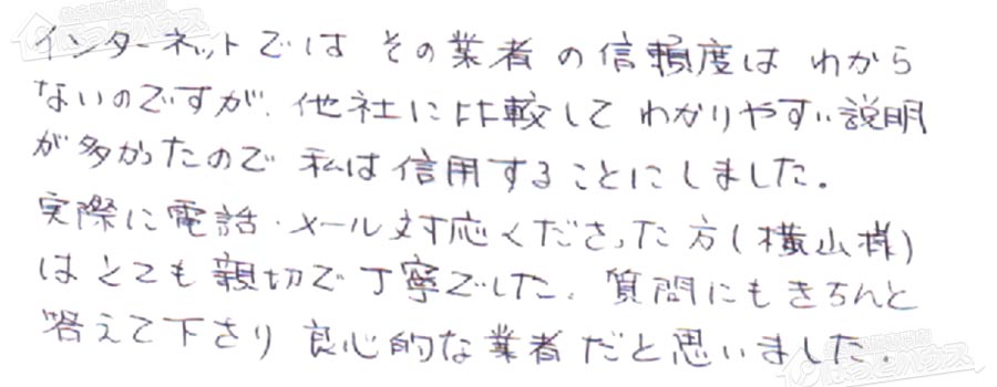 お客様の声 NO.113280 神奈川県厚木市 S様