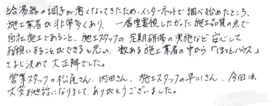 お願いすることができると思い、数ある施工業者の中から「ほっとハウス」
