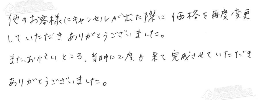 お客様の声 NO.114372 東京都調布市 H様