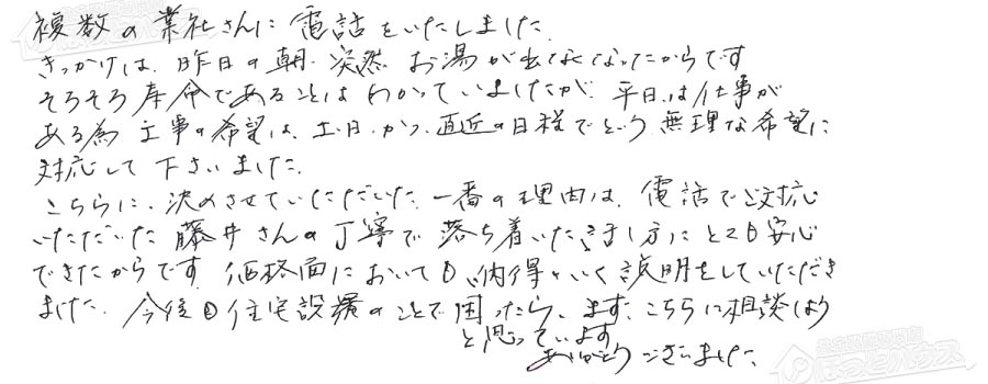 ました。今後も住宅設備のことで困ったら、まず、こちらに相談しよう