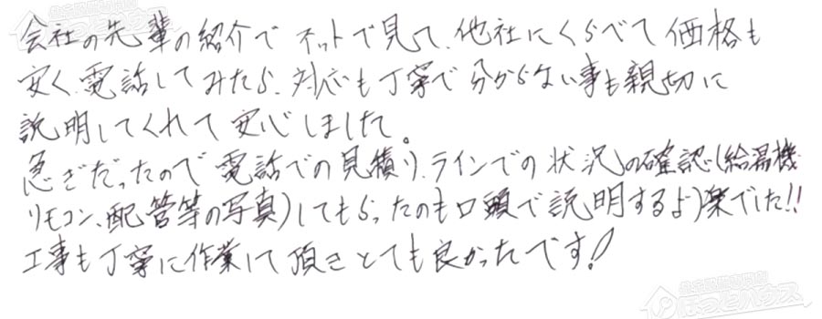 給湯器交換の評判