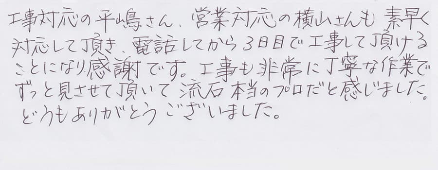 お客様の声 NO.11542 神奈川県横浜市戸塚区 U様