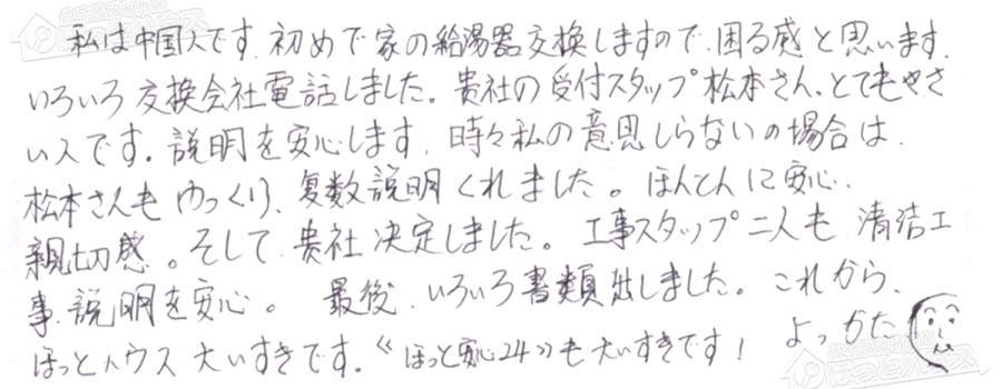 私は中国人です。初めで家の給湯器交換しますので、困る感と思います。