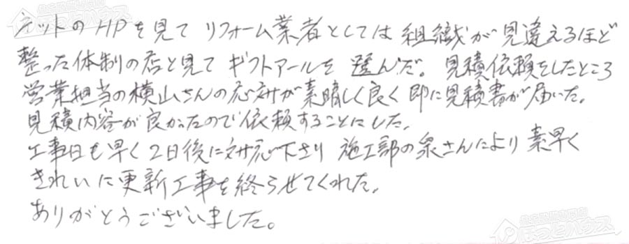 お客様の声 NO.117063 東京都日野市 K様