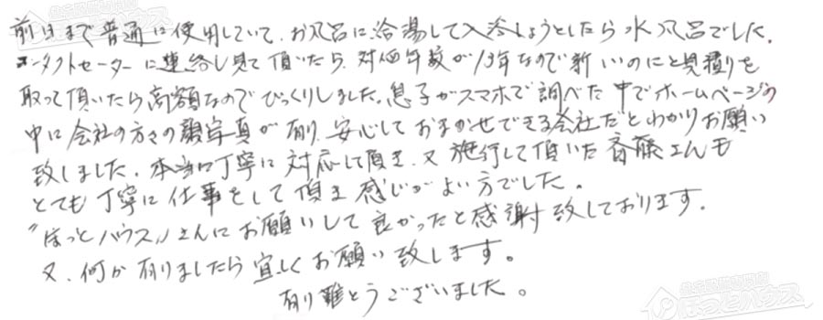 ”ほっとハウス”さんにお願いして良かったと感謝し致しております。