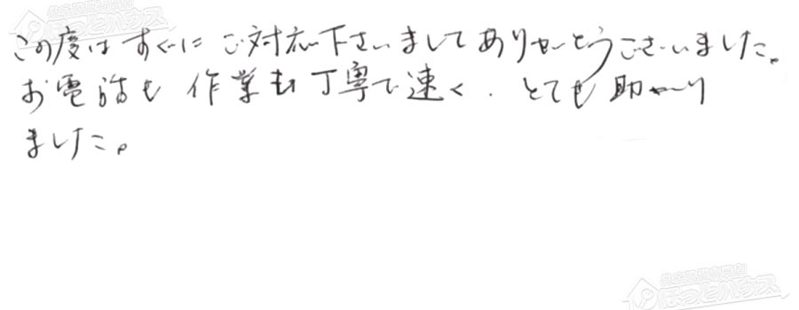 すぐに対応して頂き、とても満足…
