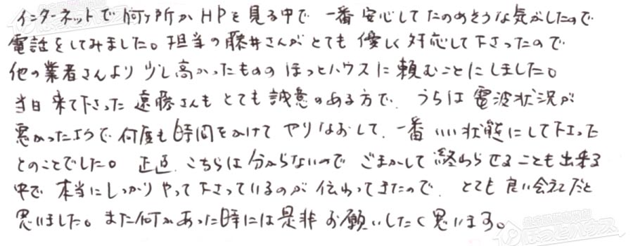 下さったので他の業者さんより少し高かったものの ほっとハウスに頼む