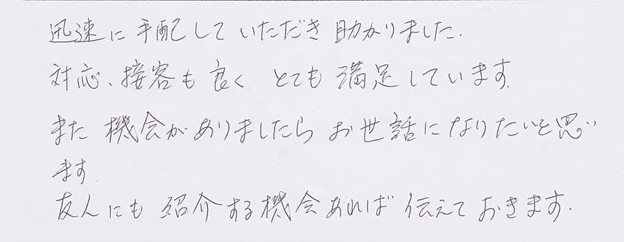すぐに対応して頂き、とても満足…