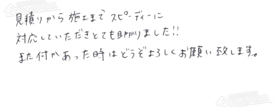 すぐに対応して頂き、とても満足…