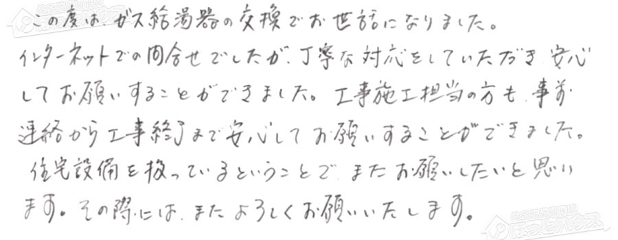 お客様の声 NO.120378 神奈川県横浜市鶴見区 H様