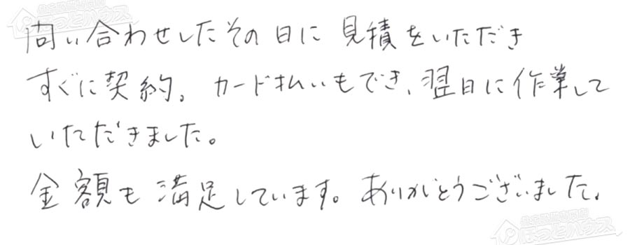 お客様の声 NO.120820 埼玉県さいたま市岩槻区 I様