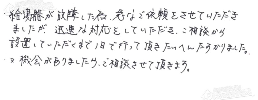 給湯器交換の評判