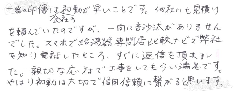 給湯器交換の評判