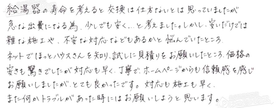 安さも驚きでしたが対応も早く、丁寧でホームページからも信頼感を感じ