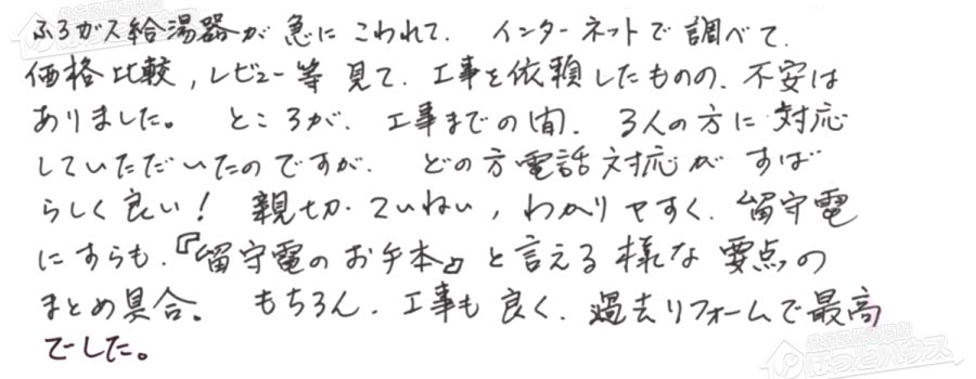 給湯器交換の評判