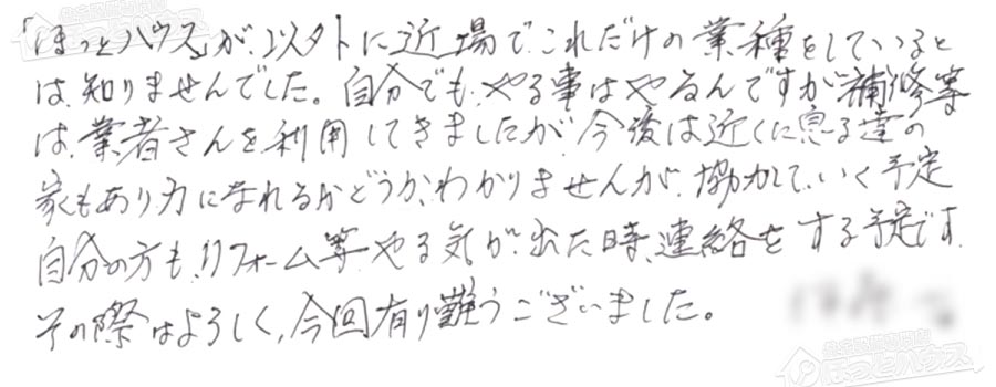 「ほっとハウス」の評判・お客様の声