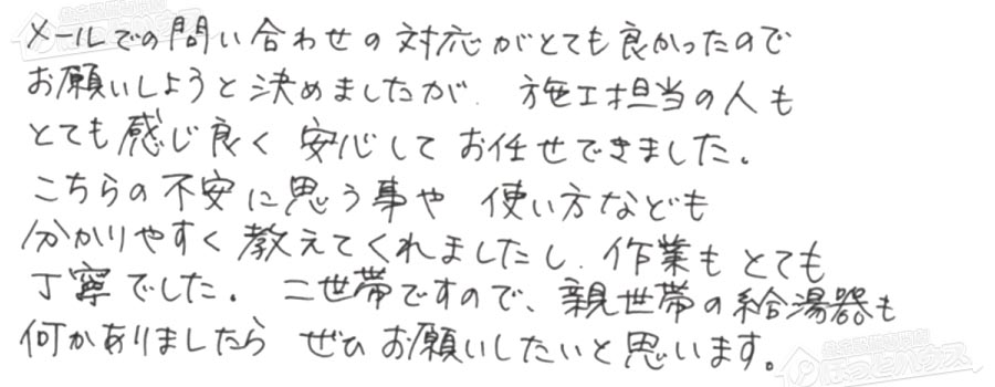 給湯器交換の評判