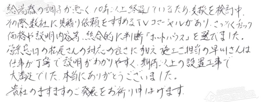 給湯器交換の評判