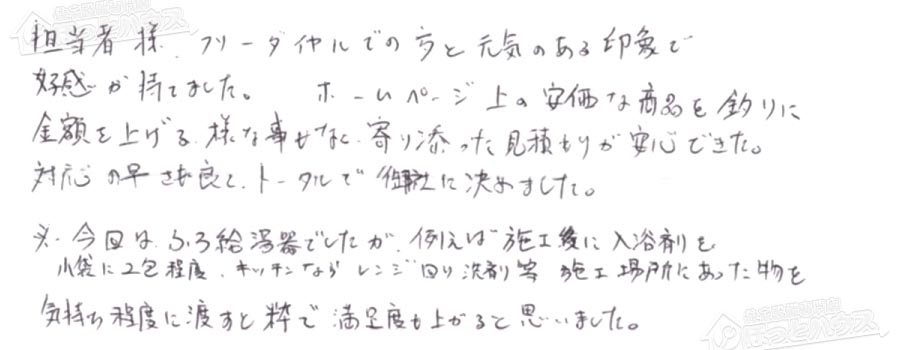 給湯器交換の評判
