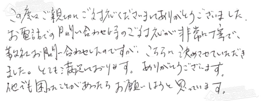 すぐに対応して頂き、とても満足…