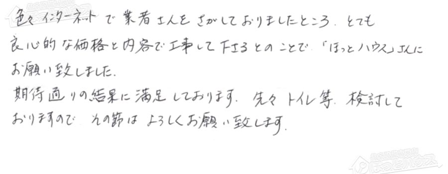 「ほっとハウス」の評判・お客様の声