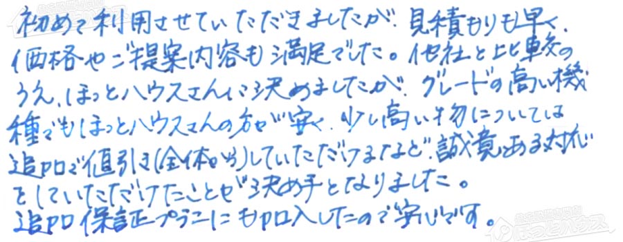 「ほっとハウス」の評判・お客様の声