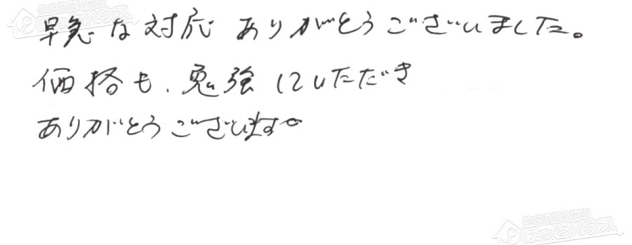 すぐに対応して頂き、とても満足…
