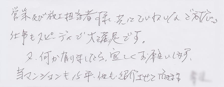 すぐに対応して頂き、とても満足…