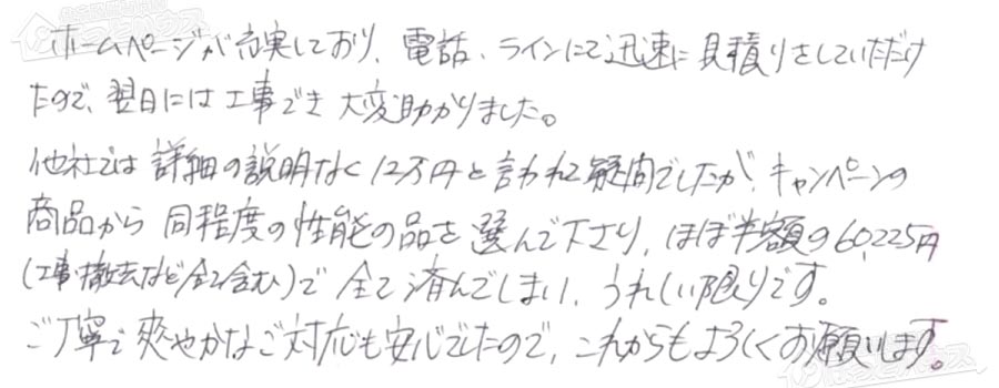 お客様の声 NO.128854 神奈川県相模原市南区 N様