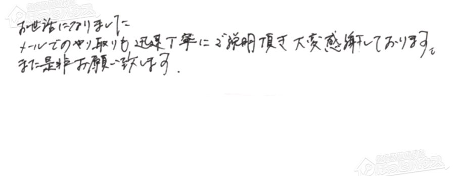 すぐに対応して頂き、とても満足…