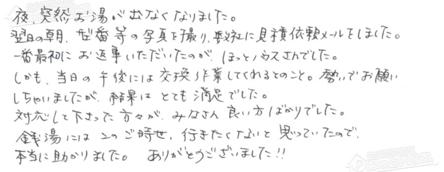 夜、突然お湯が出なくなりました。