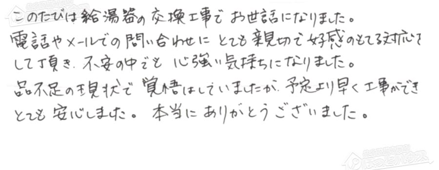 給湯器交換の評判