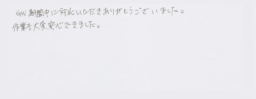 すぐに対応して頂き、とても満足…
