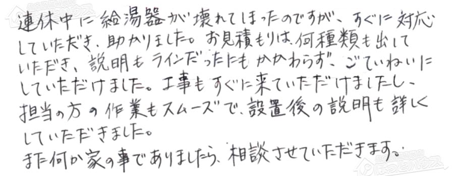 「ほっとハウス」の評判・お客様の声