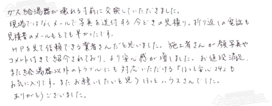 ガス給湯器が壊れる寸前に交換していただきました。