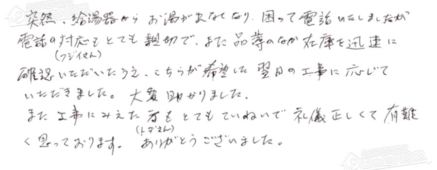 給湯器交換の評判