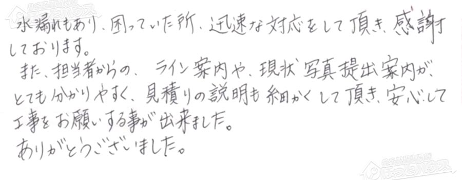 すぐに対応して頂き、とても満足…