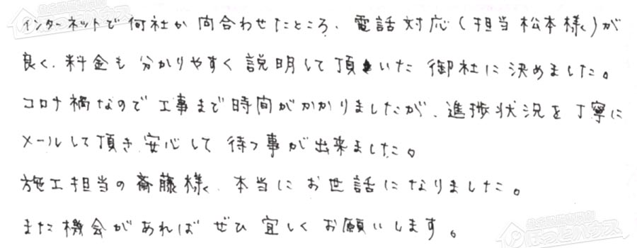 お客様の声 NO.141113 埼玉県所沢市 T様