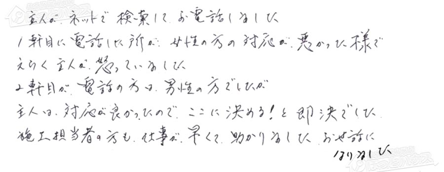 「ほっとハウス」の評判・お客様の声