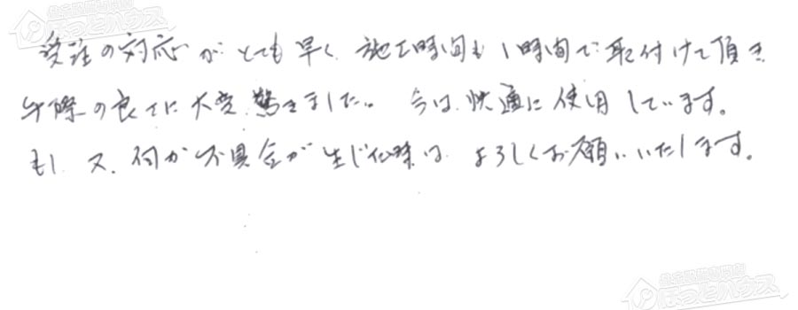 すぐに対応して頂き、とても満足…