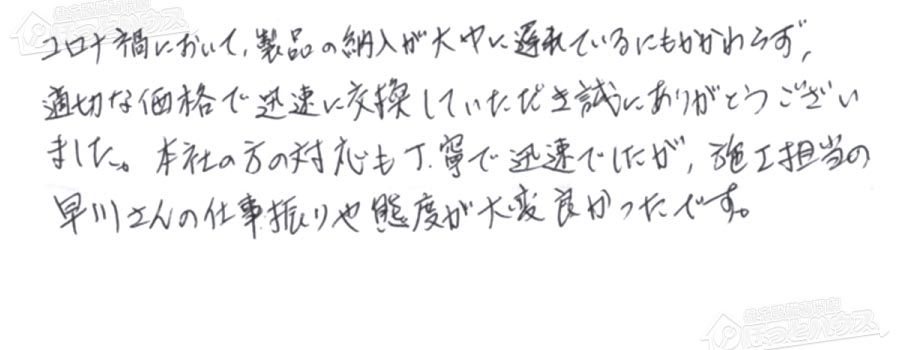 すぐに対応して頂き、とても満足…