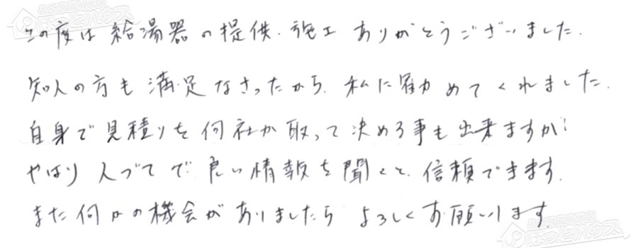 「ほっとハウス」の評判・お客様の声